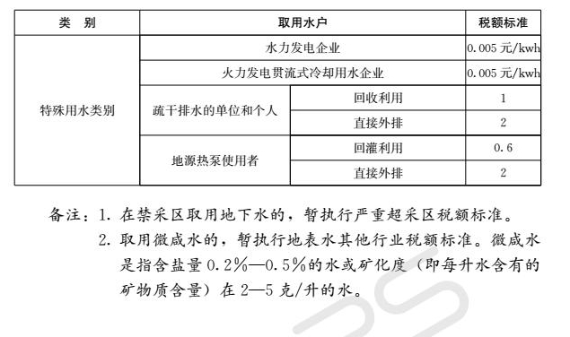 據悉,水資源稅的納稅人為直接取用地表水、地下水的單位和個人。同時,納稅人應當按照有關規定申領取水許可證。地表水是陸地表面上動態水和靜態水的總稱,包括江、河、湖泊(含水庫)等水資源;地下水是埋藏在地表以下各種形式的水資源。礦泉稅、地熱資源雖然也列入水資源稅的征稅范圍,但在試點期間暫不征收。