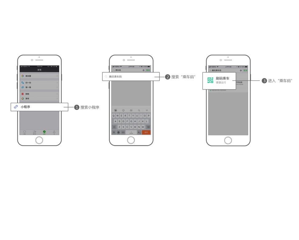1)微信中找到“發現”-“小程序”,搜索“騰訊乘車碼”
