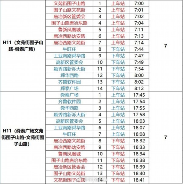 H11從文苑街圍子山路至舜泰廣場,票價7元;