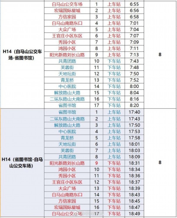 H13從明湖西路茂新街至舜華南路經(jīng)十路,票價8元;