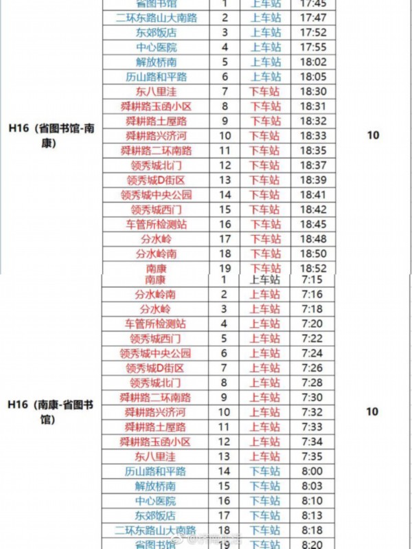 H17從南苑小區(qū)至西苑小區(qū),票價10元。