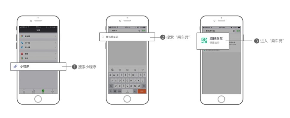 1)微信中找到“發現”-“小程序”,搜索“騰訊乘車碼”