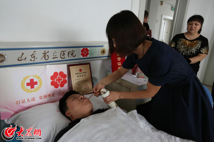 “你的入庫血樣和一位患者的血液初配(初篩配型)成功,你是否愿意捐獻?”今年6月份,在家準備安全生產月考試的吳童,接到了來自濟南市紅十字工作人員的電話。“心情就像中了彩票一樣的高興,十萬分之一的幾率,自己的血液能初配成功簡直是不可思議。”吳童說,在得知這一消息后,他立即和家人商量,決定同意捐獻。通過進一步的高分辨配型和體檢,吳童于9月12日正式簽訂了捐獻造血干細胞同意書。